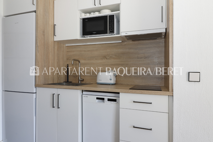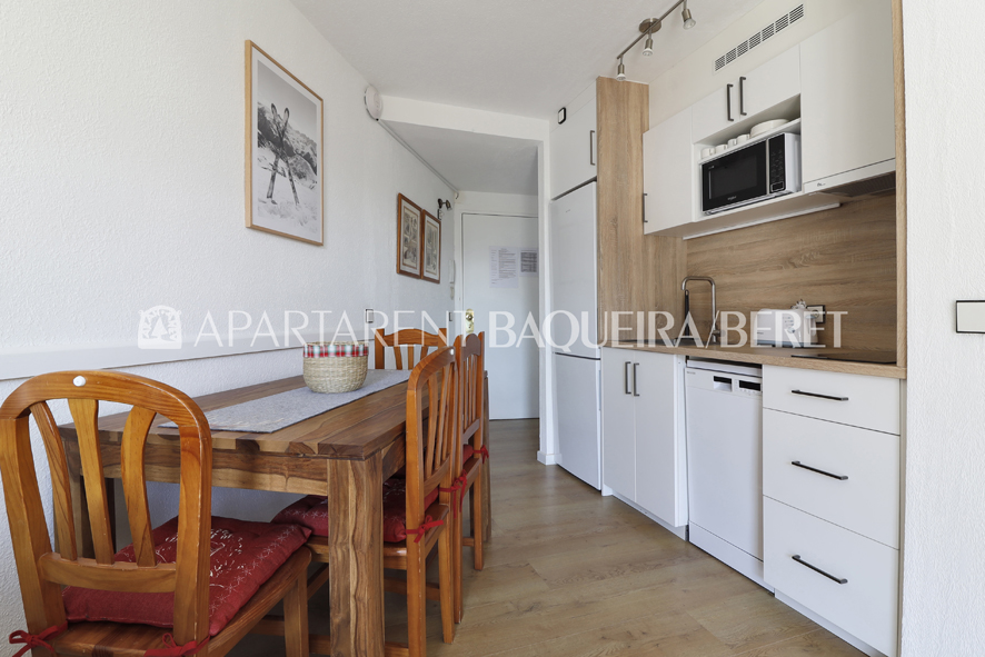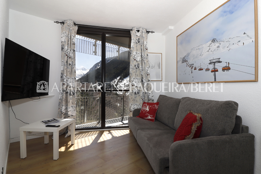 Apartamento totalmente reformado de un dormitorio y un baño en el núcleo 1.500 de Baqueira, frente a zona ajardinada y muy próximo a tiendas y restaurantes para disfrutar al máximo también del après-ski.